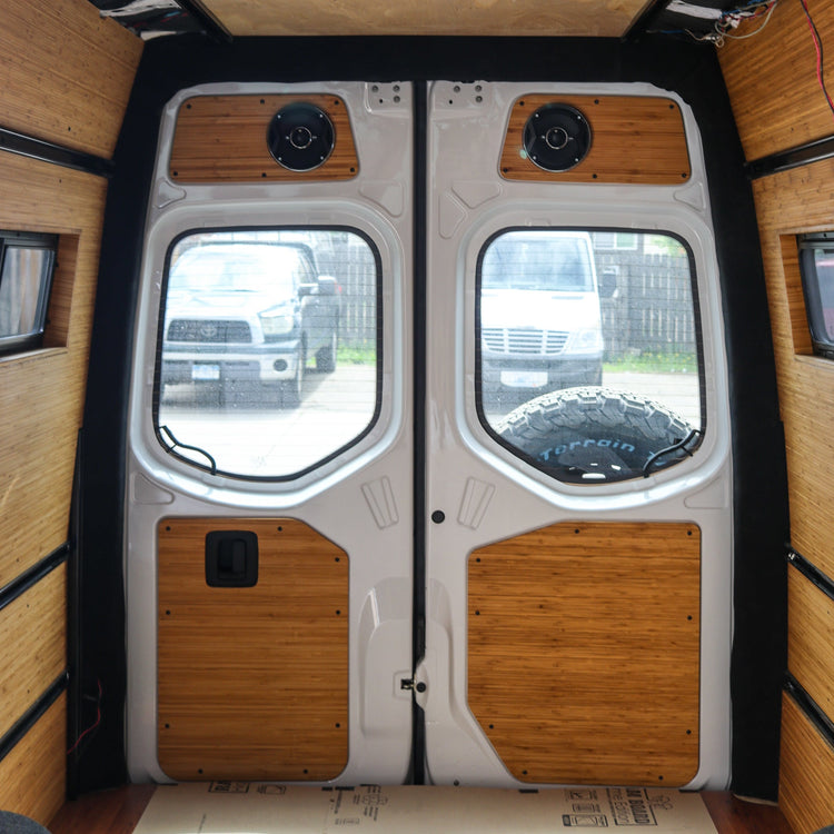Finish out all the doors of your Sprinter with our ultimate bundle! CNC cut to match the rear and sliding door factory panels on high roof Sprinters, these panels deliver a clean, finished look with minimal effort. Whether you're aiming for a professional-grade build or just want something that actually fits, this kit will take the guesswork out of creating the door panels for your Sprinter van conversion! Install is quick and easy, utilizing factory holes with rivet nuts (aka rivnuts) and black button head machine screws.